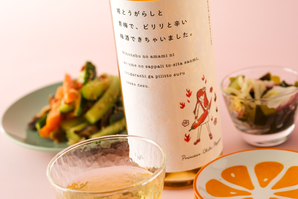 岡山県赤磐市の酒蔵がつくるピリリと辛い唐辛子梅酒です。日本酒をベースに、地元赤磐産の青梅をじっくり 1年間漬け込んだ後、岡山県鏡野市の奥津地域のみで栽培される貴重な固有種の「姫とうがらし」をブレンドしました。刺激的な唯一無二の味わいが特徴です。
