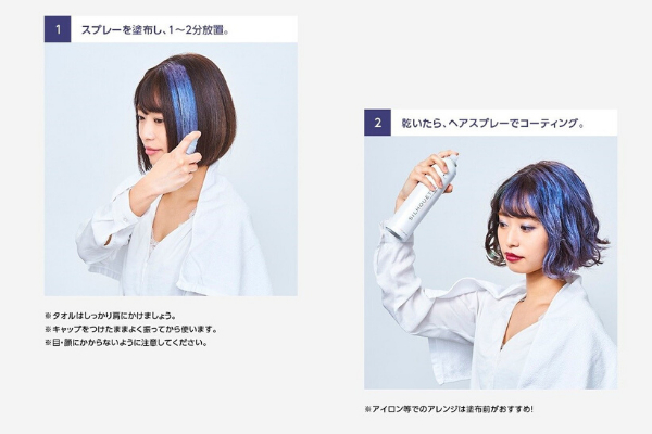 ※髪に塗布後、ヘアスプレーを仕上げに使用すると色持ちが良くなります。