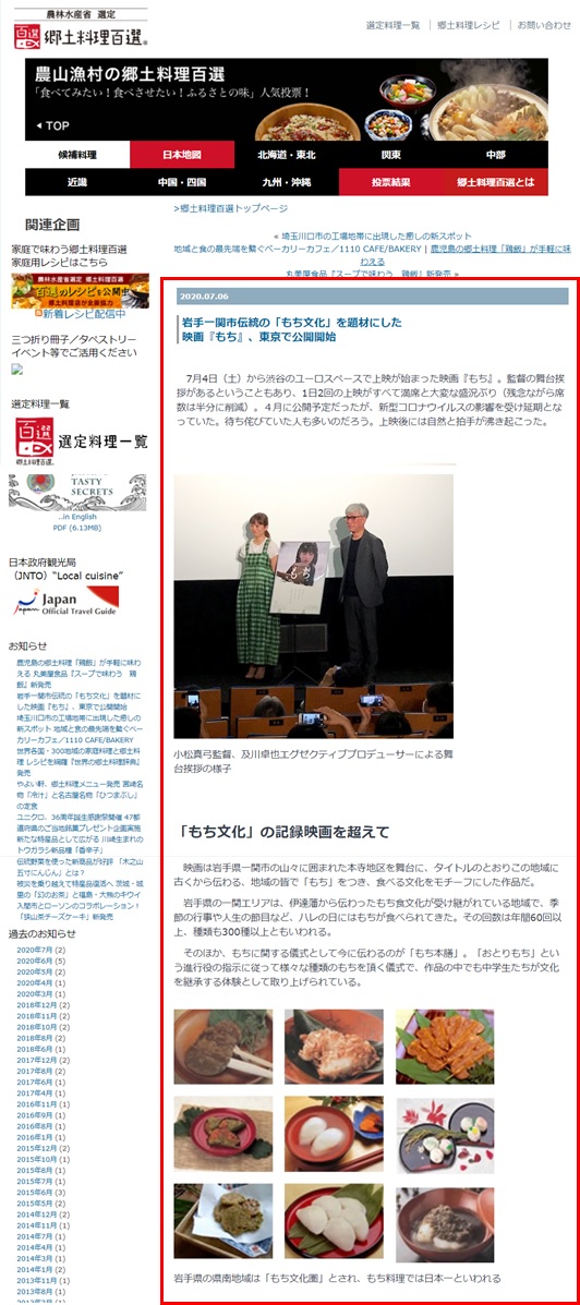 ●ウェブサイト「農林水産省選定 農山漁村の郷土料理百選」について