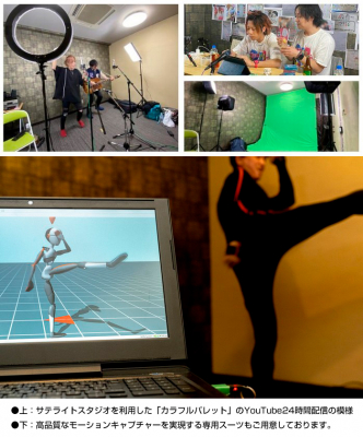 高田馬場駅より徒歩1分にある配信用スタジオでは、モーションキャプチャーシステムを利用したVtuber配信や、映像撮影・クロマキー撮影スタジオとしてもご利用いただけます。配信サービスとセットでご利用いただく場合は、スタジオ利用料は無料となります。