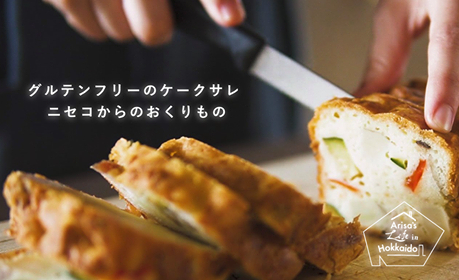 ニセコ産の食材をふんだんに使ったグルテンフリーやベジタリアンのメニューを3つ作ります。メインは『グルテンフリーのケーク・サレ』。『カブとササゲの塩スープ』と、デザートとしてベジタリアンでも食べられるようにゼラチンを使用しない『生姜プリン』を丁寧に調理する動画を配信します。