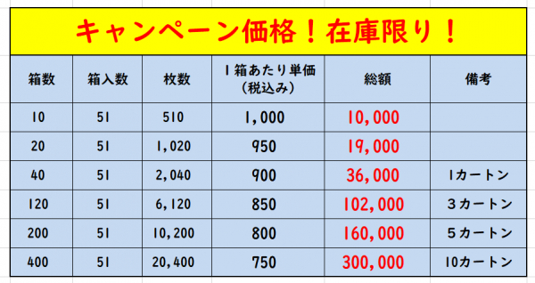 ◆包装方法 1箱/51枚入り(17枚入り×3袋入り)