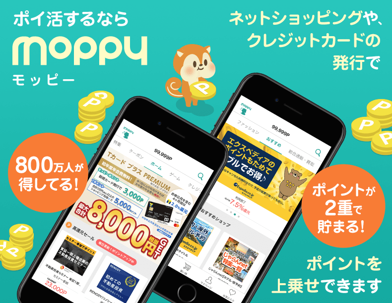 ※スマートフォン版モッピーアプリでは、Webブラウザ版モッピーと同様のサービスを提供いたします(一部例外あり)。詳しくはモッピーアプリをご確認ください。
