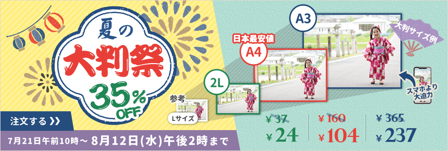 株式会社福多デジタルフォト(本社:福岡県福岡市博多区/代表取締役 佐野 貞昭)は運営する写真プリントサービス『vivipri(ビビプリ)』において、2020年7月21日(火)朝10時から8月12日(水)午後2時まで「夏の大判祭35%OFF」を開催いたします。