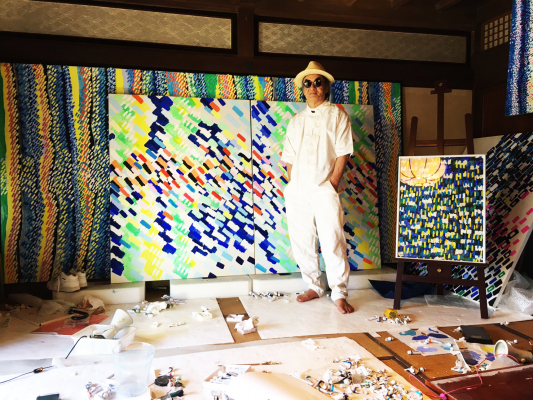 「ぼくはずっと光だけを描き続けている。反射じゃなくて、“光そのもの”。光にも種類があって、あったかい光もあれば湿っぽい光もある。でも光ってどれも気持ちがぱあっと明るくなるでしょ? 描きたいのは、そういう元気になる光。点や線を重ねていくと、絵の中に“光の流れ”が生まれてくる。その流れに沿って人の気持ちを上昇させるような絵が描けたら嬉しい。」