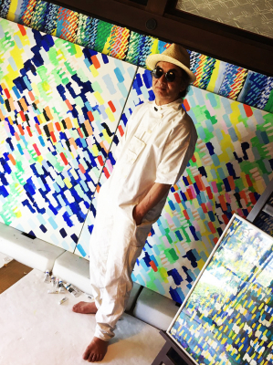 コロナウイルス後の世の中を照らす光として、現在もアトリエで全世界に向けメッセージアートを描き続ける氏の新たなプロジェクト、それはアートの光で世の中を健康的に照らしだしたいと願う強い気持ちからきている。