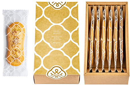 MIYUKA では原点に戻ってあえて何もサンドせず、猫の舌の形に焼き上げました。