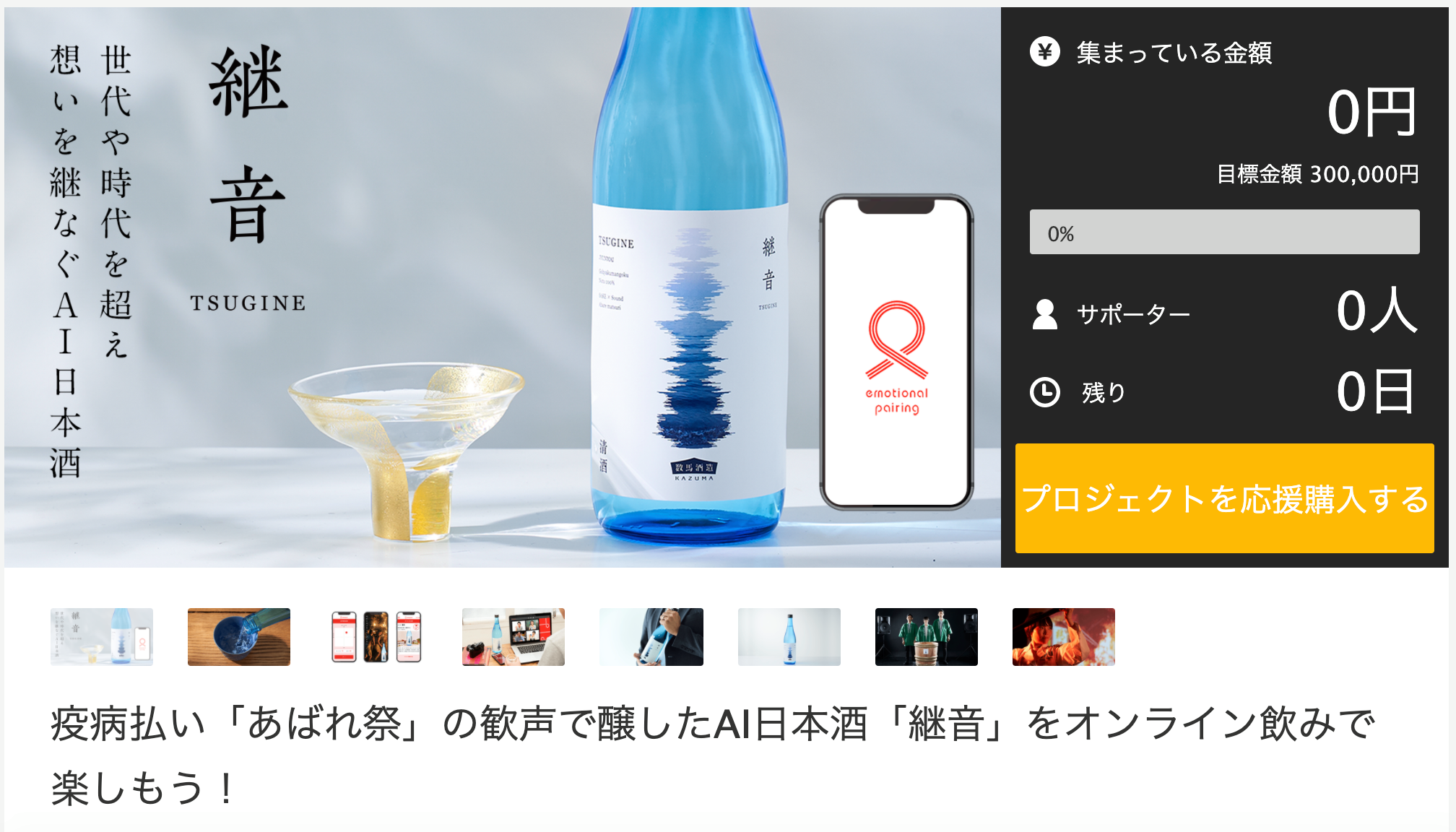 (1)350年の歴史上初めて中止となる疫病払いの神事“あばれ祭”の「歓びの声」だけを聞かせて醸造した日本酒「継音(つぎね)」をMakuake限定で発売。