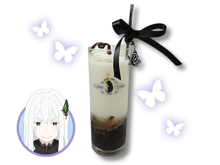「#リゼロ」をつけてSNSに投稿した方のみが注文可能なスペシャルドリンクには、自らを「強欲の魔女」と名乗る少女・エキドナをイメージし、黒と白に彩られたドリンクもご用意。ぜひお楽しみください。
