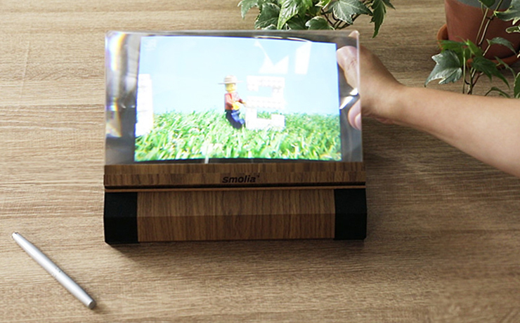 ・スマートフォンを置くだけで、小さな画面がおよそ12インチの大画面に変身する拡大鏡