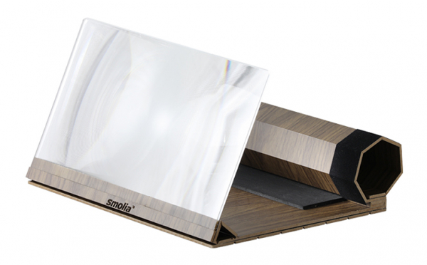 本製品を使えば、スマートフォンを置くだけで簡単に小さな画面がおよそ12インチの大画面になり、より臨場感のある動画を楽しむことができます。また、スモリアフォンは「見ごこち」にもこだわり、レンズの傾きや土台を見やすい角度に調整することが可能です。