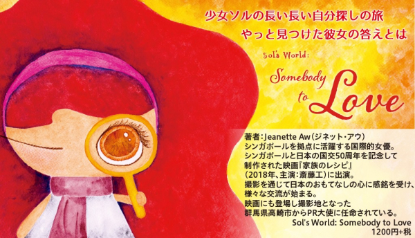 シンガポールを拠点に活躍する国際的女優、Jeanette Aw(ジネット・アウ)さんの描いた絵本「Sol's World: Somebody to Love」が紀伊國屋書店の全国主要33店舗で、8月15日から31日まで限定販売されます。ジネットさんは、2017年に、シンガポールと日本の国交50周年を記念して制作された合作映画「家族のレシピ」(原題:Ramen Teh、主演:斎藤工、監督:エリック・クー)の撮影で初めて日本を訪問。「日本はずっと行きたかった国で、撮影をきっかけに日本が大好きになりました」と話しています。この合作映画の撮影のコーディネートなどに関わってきたクロスボーダー株式会社(本社:東京都台東区、代表取締役グループCEO:古川エドワード英太郎、代表取締役:佐藤泰也)が絵本の販売代理店契約を締結し、今回の限定販売が実現しました。