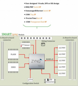 すぐに使えるSMART zynqモジュールとSMART zynqキャリアボードを組み合わせたプラットフォームです。Linux OSと、HSR / PRP、ギガビットイーサネット、IEEE 1588ネットワークの調整に必要なIPおよびソフトウェアが組み込まれています。これは、HSR / PRP、マネージドイーサネット10/100 / 100TX-FX、Profinet、IEEE 1588v2、およびTSNの分野におけるカスタムスイッチの完全なソリューションです。