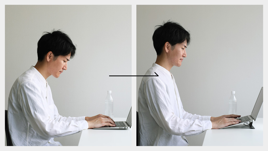 これには「座っている姿勢」が関係しており、リビングなど普段仕事をしない場所で長時間前傾姿勢でパソコン画面を凝視していることが原因と考えられます。