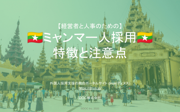外国人採用支援の総合ポータルサイトdnus(ディヌス)を提供するDOC株式会社(本社:東京都千代田区/代表取締役:廣瀬義憲)は【完全保存版】ミャンマー人を採用・採用検討している経営者・人事向けレポート( https://bit.ly/2XPWBZk )を令和2年8月14日に公開いたしました。