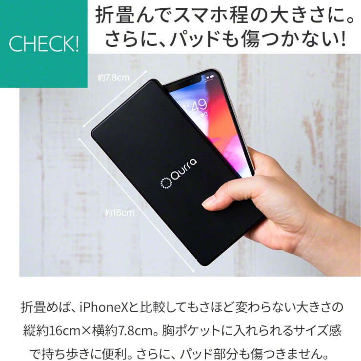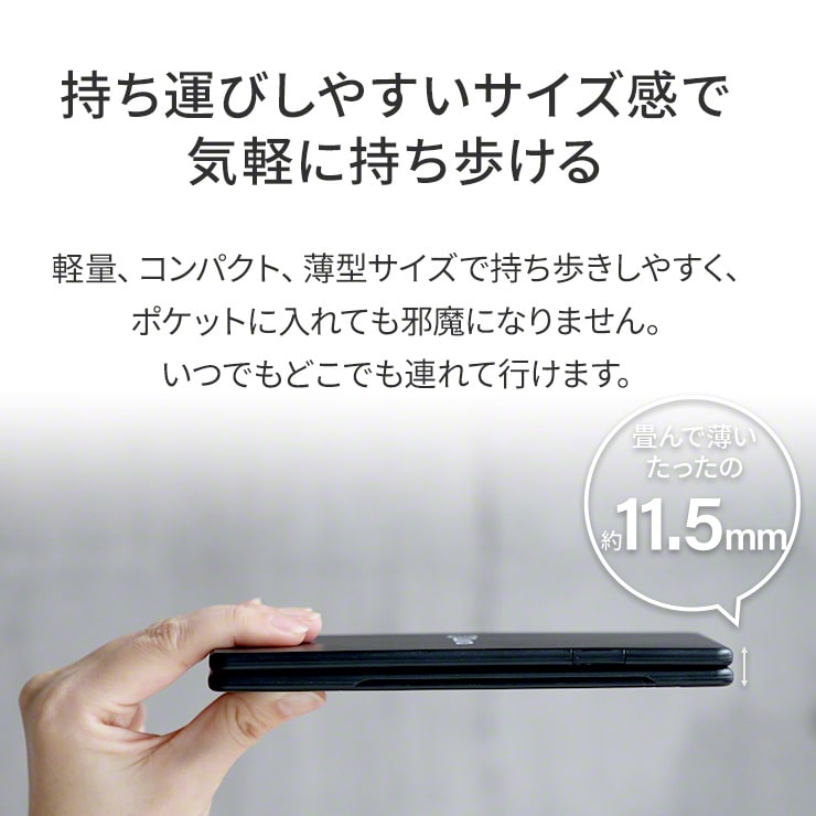 閉じた状態のサイズ : 約、 縦160mm x 横78mm x 厚さ11.5mm