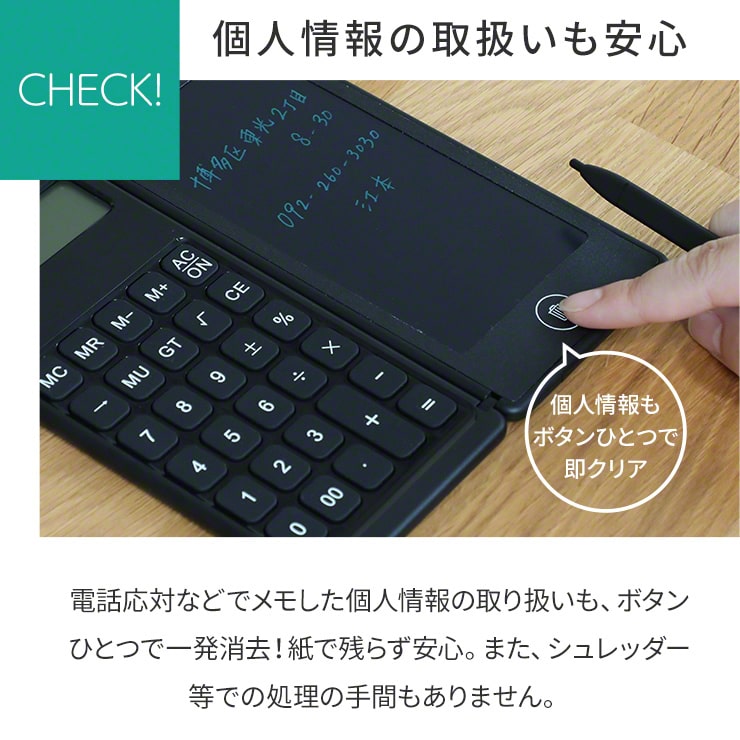 また、同商品はボタン一つでメモを消去できるため、在宅勤務で個人情報を取り扱う際にも適しています。