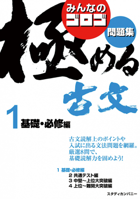 『みんなのゴロゴ 極める古文問題集』は、「1 基礎・必修編」「2 共通テスト編」「3 中堅~上位大突破編」「4 上位~難関大突破編」に分かれており、基本問題から順番にステップアップしながら古文の実力を身に付けられる構成となっています。書籍の購入者には、映像や音声による講義の視聴と電子ブックが閲覧できるようになる特典付きです。古文学習の理解を深めるために、ぜひお役立てください。