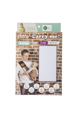 「ベッタ キャリーミー!ロング」は、機能はそのままに、サイズをプラス13cmと長くし、がっしりしたパパにも快適に抱っこできるサイズにしました。今現在販売中の「ベッタ キャリーミー!」と識別しやすくするためパッケージもパパの抱っこ写真にし、名称は「ベッタ キャリーミー!ロング」としました。