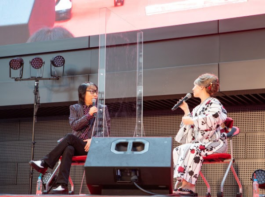 開演すると会場にいるお客様は伊藤氏のトークに集中。そしてゲスト LOVEBITESの”asami”さんが呼び込まれ更に日本酒とロックのトークが熱く語られました。