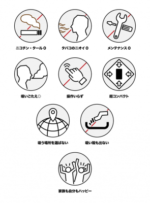 「ニコチン」「タール」「副流煙」「嫌なニオイ」がゼロなので