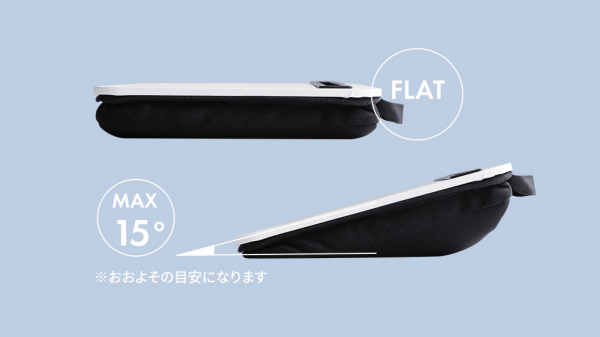 ビーズが流動し最大15度(※おおよその目安)で接地面にフィットするため、不安定なひざ上でも機器がしっかりと安定し傾斜もお好みで調節できます。