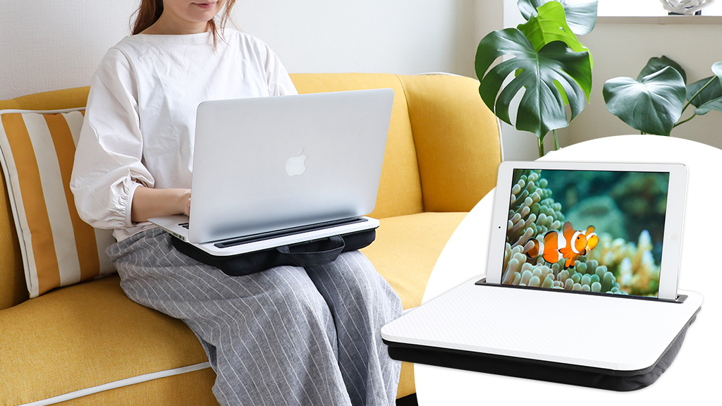 肩腰の負担軽減やリラックスのため、リビングのソファ等でノートパソコンを開いた場合、ひざ上の傾斜でノートパソコンが不安定になる、キーボードが打ちにくい、ノートパソコンの放熱で膝が熱くなるなど、使いづらさを感じる事がありますが、本製品は「置くだけ」で、ひざ上のパソコン作業を快適にサポートします。
