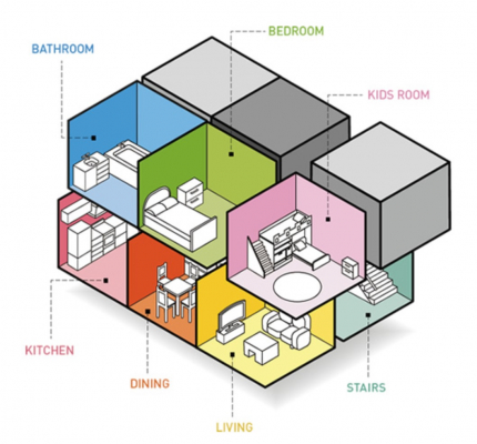スマホ画面をカスタマイズするように「ハコ」を自由に組み合わせる家