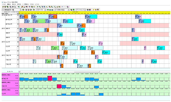 個別受注型の機械・装置業様では、製品製造の中で求められる「社内での工作機械による加工の計画」が重要です。機械割当てや負荷・納期調整をTECHS-Sの指示情報と連携して、『Seiryu』が自動で行います。