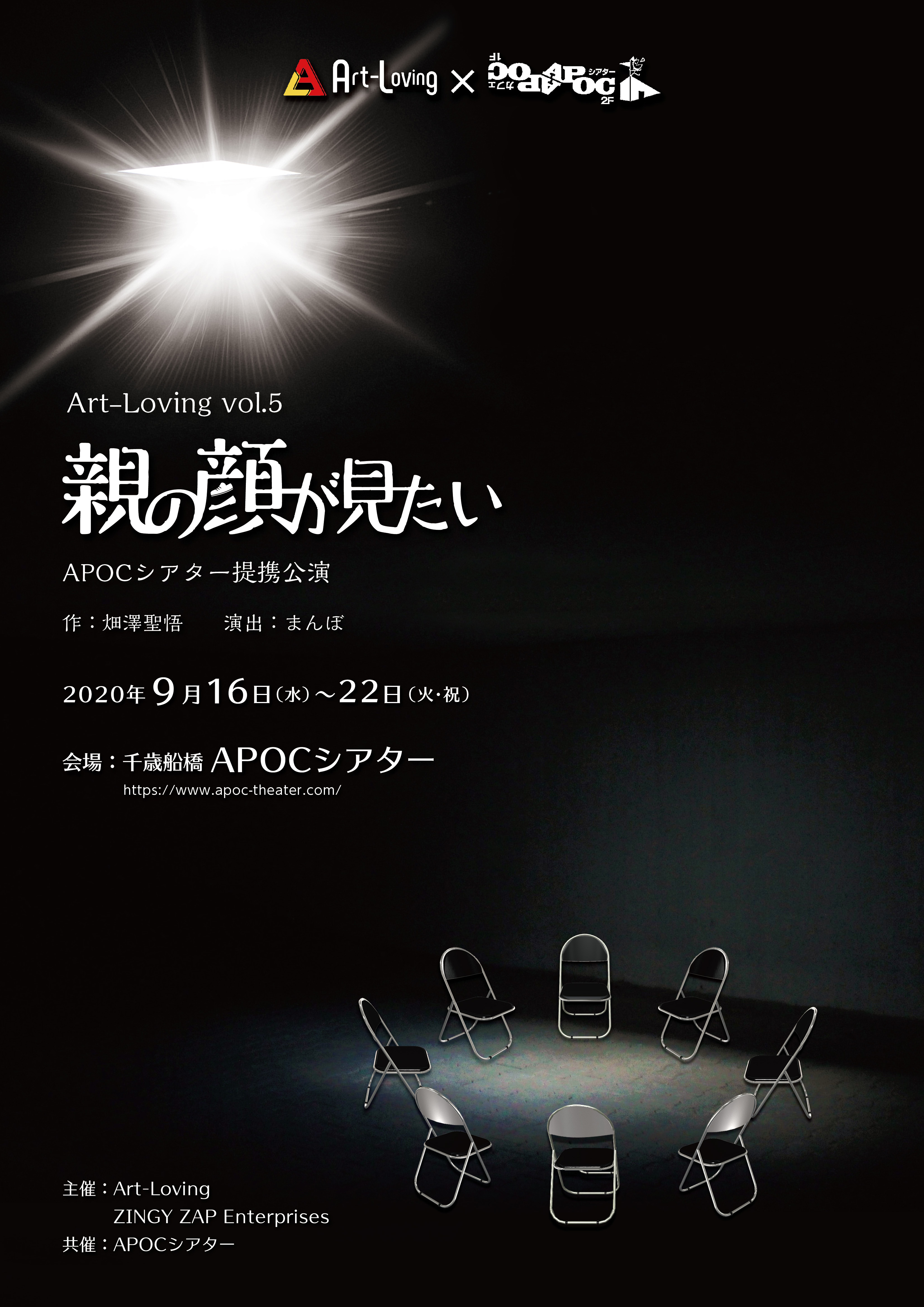 Art-Loving(代表 小山裕嗣)は、2020年9月16日(水)から22日(火・祝)まで7日間、全10ステージを千歳船橋APOCシアターと提携公演として、Art-Loving vol.5「親の顔が見たい」を上演いたします。