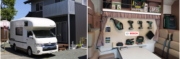 そんな中、お出かけしたくてもできない方や自粛生活を余儀なくされている方の為に、「with コロナ」時代の新しい楽しみ方として、キャンピングカーを「動く工房」として内装を施し、Boschの最新のDIY工具を搭載した“おうちでもお出かけ先でもDIYが楽しめる!「Boschキャンピングカー」”を一般レンタル開始することになりました。