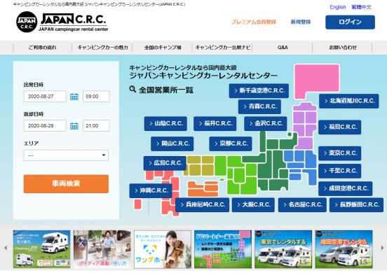 「Japan C.R.C.」は、東京キャンピングカーレンタルセンターをはじめ、新千歳空港C.R.C.、旭川空港C.R.C.、青森C.R.C.、福島郡山C.R.C.、成田空港C.R.C.、名古屋セントレア空港C.R.C.、金沢C.R.C.、福井C.R.C.、長野飯田C.R.C.、大阪C.R.C.、京都C.R.C.、兵庫尼崎C.R.C.、岡山C.R.C.、広島C.R.C.、山陰鳥取C.R.C.、沖縄C.R.C.をグループ傘下に収める日本最大級のキャンピングカーレンタルサービスです。はじめての方でも手軽にキャンピングカーの魅力を体験でき、行き先、用途、ご利用人数に合わせ、お好みの車種をお選びいただけます。