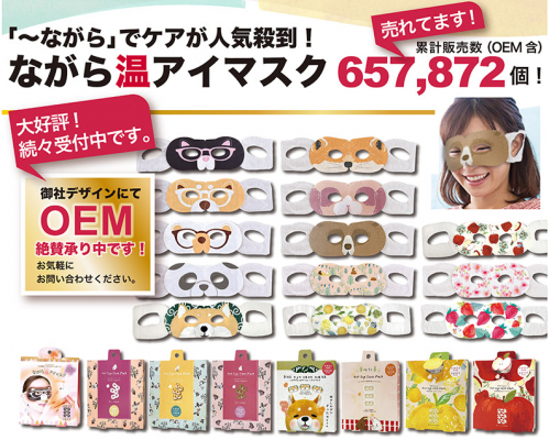 展示はベストセラー商品「ながら温アイマスク」に絞り、OEM対応も含め、新しい販売チャンネルにアプローチします。