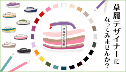 "オーダー草履 つまくれない" はデザイナーになった気分で、お好きなカラーや生地を組み合わせて草履をデザインし、ぬり絵を楽しみながら自分好みの草履をつくることができます。