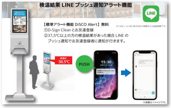 また、設置エリアにwifi環境が整備されていれば、LINEの機能を使った検温結果のプッシュ通知機能も搭載できます。
