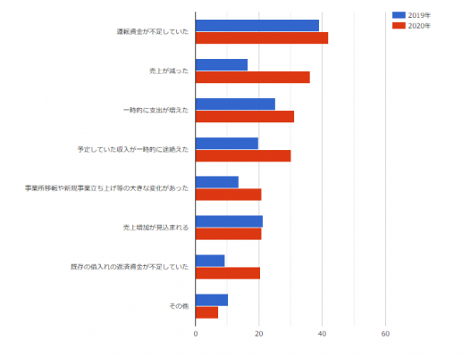 一番多いのは「運転資金が不足していた」で、41.3%
