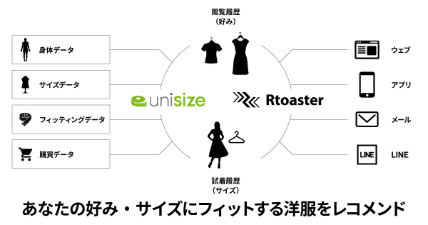 本取り組みにおいて「unisize」と「Rtoaster」を連携させることにより、「unisize」のサイズレコメンドに、消費者の趣味・嗜好に応じた「Rtoaster」による多彩なパーソナライズ機能を付加することをはじめデータ活用を推進することで、アパレルECの価値向上に貢献していきたいと考えています。