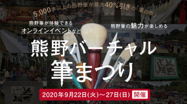 今年は新型コロナウイルス感染症拡大にによる影響等でリアル会場での開催が中止となりましたが、コロナ下でも変わらず熊野筆の素晴らしさを伝える機会を創出し、日本を誇る熊野筆の祭典を待ち望む多くの声にこたえるべく、「熊野筆まつり」開催以来初の試みとなるオンラインで「熊野バーチャル筆まつり」を開催するはこびとなりました。