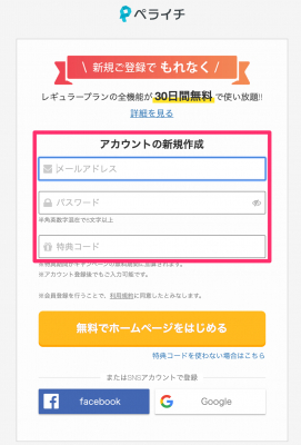 <『ペライチ』会員登録時の特典コードを登録する方法>