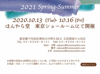 「心からほっとする健康と癒し」をコンセプトに商品を展開する株式会社ほんやら堂(本社:群馬県高崎市 代表取締役:藤永辰美)は、2020年10月13日(火)から16日(金)まで2021春夏商品展示会を開催します。