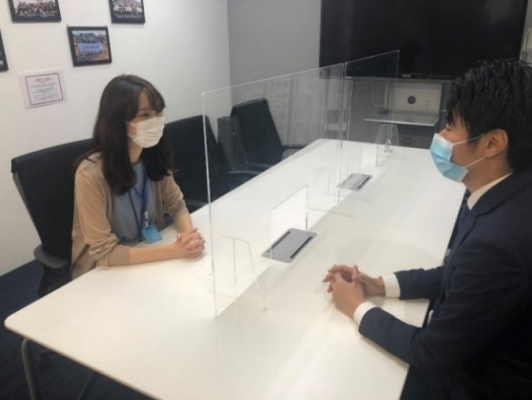 当社で開催している、企業と就職活動生をマッチングする就活イベント『Meets Company(よみ:ミーツカンパニー)』では、マスク・フェイスシールド着用や、来社時の検温、アルコール消毒、1テーブル最大人数5名とし間隔を空けるようにするなど細心の注意を払った上で、全国で通年開催しています。