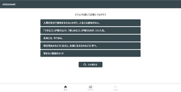 そこで会社の目的、つまりビジョンやミッションにフォーカスした就職を支援できればこのミスマッチはなくなるのではないかと考え、“visiomeet”は開発されました。