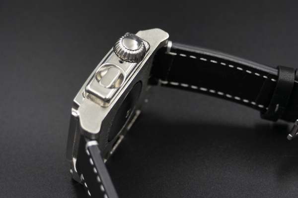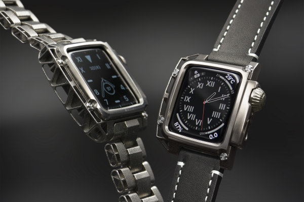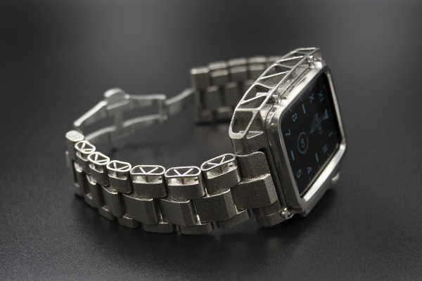金属粉末3Dプリント と 削り出し加工 で製造した、純チタニウム製アップルウォッチジャケット。ウォッチメーカーで多数の腕時計をデザインし、国内外の数々の高級腕時計に深くかかわってきた、FACTRONのデザイナーだからこそできるデザインです。