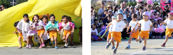 毎年10月に恒例の運動会を行ないます。参加者は園児の家族も含め軽く3000人くらいになります。