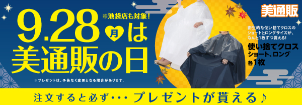 次回の「美通販の日」は2020年9月28日(月)。プレゼントアイテムは、「使い捨てクロス ショート、ロング各1枚」。衛生的な使い捨てクロスのショートとロングサイズをなんと1枚ずつプレゼントいたします。大変お得な日ですので、この機会にたくさんの方々にご利用いただければと考えております。