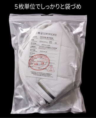 KN95の検査証、使用期限に関する情報が同梱されています。