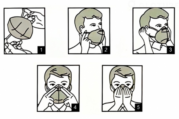 粉塵や飛沫を防ぐために口と鼻を覆うように、隙間無くしっかりと顔に密着させて下さい。