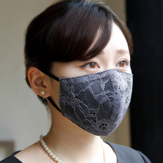 洗えるエレガントマスク ラッセルレース/グレー