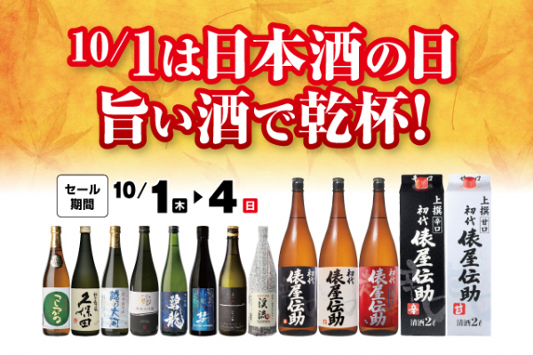 全国に178店舗で酒の専門店をチェーン展開する株式会社リカーマウンテン(本社:京都市)は、10月1日(木)~4日(日)の4日間、深夜営業店舗を除く117店舗で「10/1は日本酒の日 旨い酒で乾杯!セール」を開催いたします。