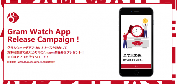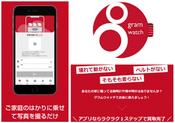 グラムウォッチでは、店舗でのサービスの特長や利点をアプリ化させるだけではなく、時計をはかりに乗せて写真を撮るだけというアプリならではの利便性や、買取総重量が多くなればなるほど換金率が上がる機能を加え、スマートフォンの利用が活発な若年世代だけではなく、ご自宅に眠っている時計を多く保有しているシニア世代の利用も見込んでおります。